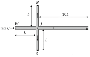 \[ 30 + \frac{1}{2g} \left( \frac{Q^2}{0.0314^2} \right) \] \[ = 10 + \frac{1}{2g} \left( \frac{Q^2}{0.00785^2} \right) \]
