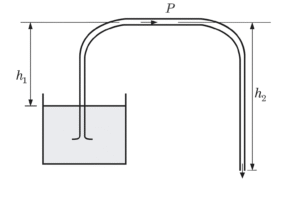 For a venturimeter, neglecting losses, Bernoulli’s equation between the pipe (section 1) and throat (section 2) is: \[ P_1 + \frac{1}{2} \rho v_1^2 = P_2 + \frac{1}{2} \rho v_2^2 \] Rearranging: \[ P_1 – P_2 = \frac{1}{2} \rho (v_2^2 – v_1^2) \]
